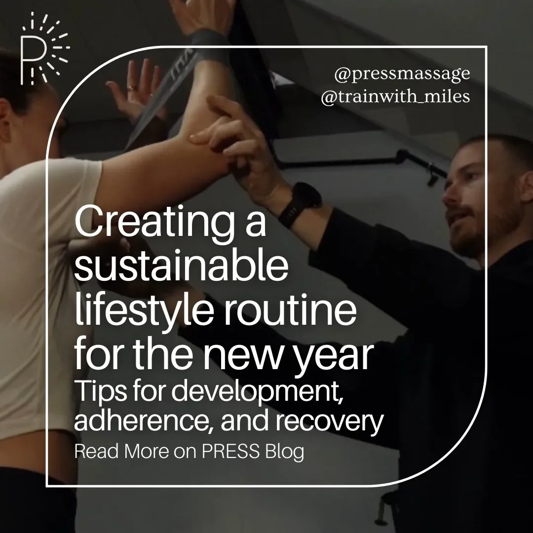 The new year is a great time to develop an upgraded health and lifestyle plan. At PRESS Modern Massage, we believe that self-care is the foundation of a sustainable wellness routine. Movement, nutrition, and recovery all work together to keep your body performing at its best, which is why we're teaming up with Miles Stevens to help you optimize all three. To support your recovery journey, we’re offering $20 off your next massage — more details at the end! In this article, we will cover the three key categories of a successful lifestyle routine: exercise, nutrition, and recovery.