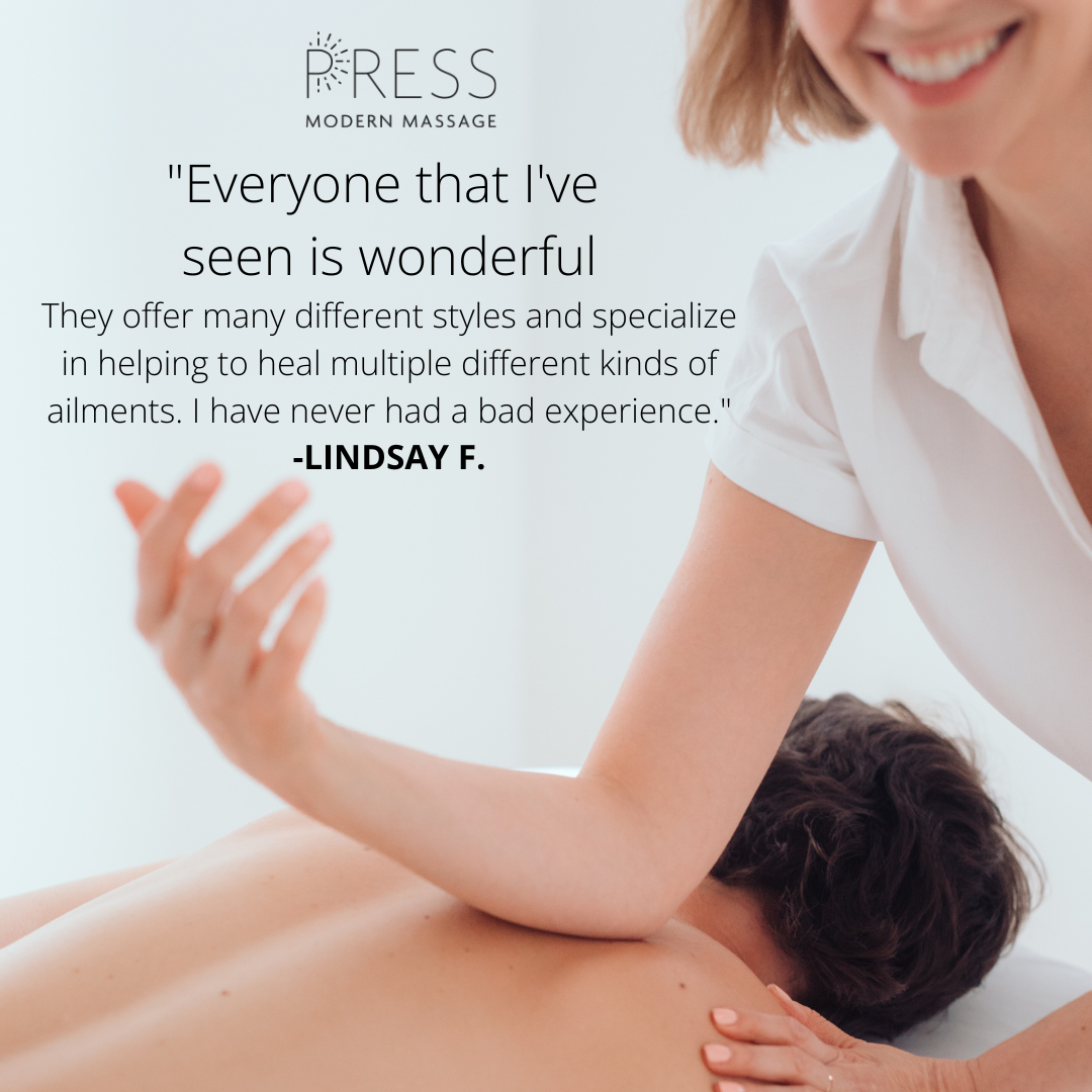 At PRESS Modern Massage, we encourage you to communicate your preferences and needs with our therapists so they can tailor the session to your liking.